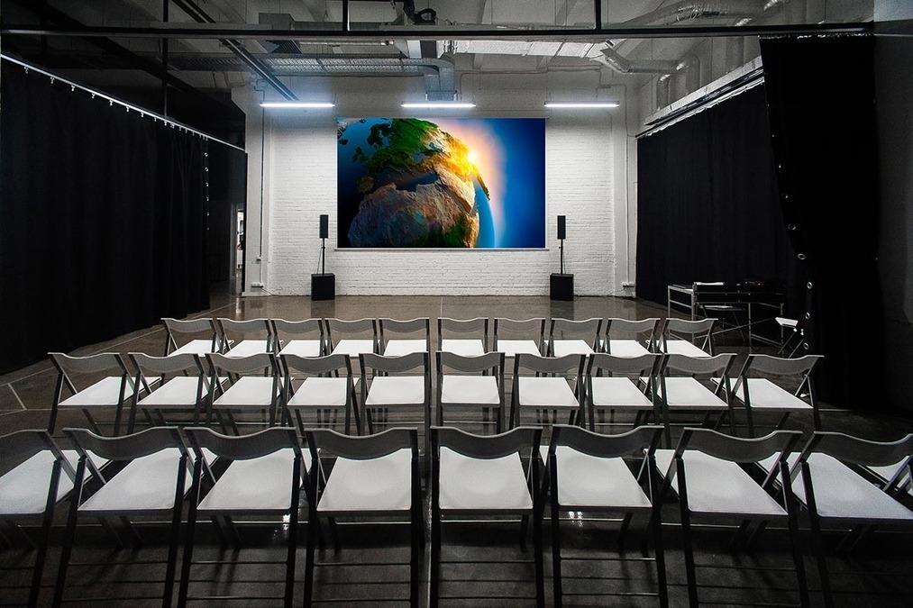 Простір розташований на першому поверсі студії та ідеально підходить для проведення прес-конференцій, презентацій, лекцій, воркшопів, тренінгів, майстер-класів та інших бізнес-подій. У залі є сцена, професійна акустика, необхідне технічне оснащення, швидкий Wi-Fi, а також можливість підключення додаткового обладнання студії.