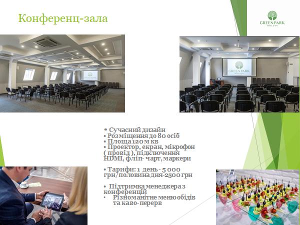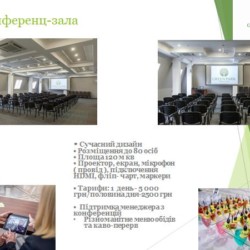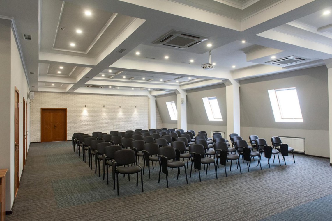 Бронювання конференц-зали можливе лише за умови паралельного бронювання готельних номерів для проживання учасників мінімум на 2 доби.