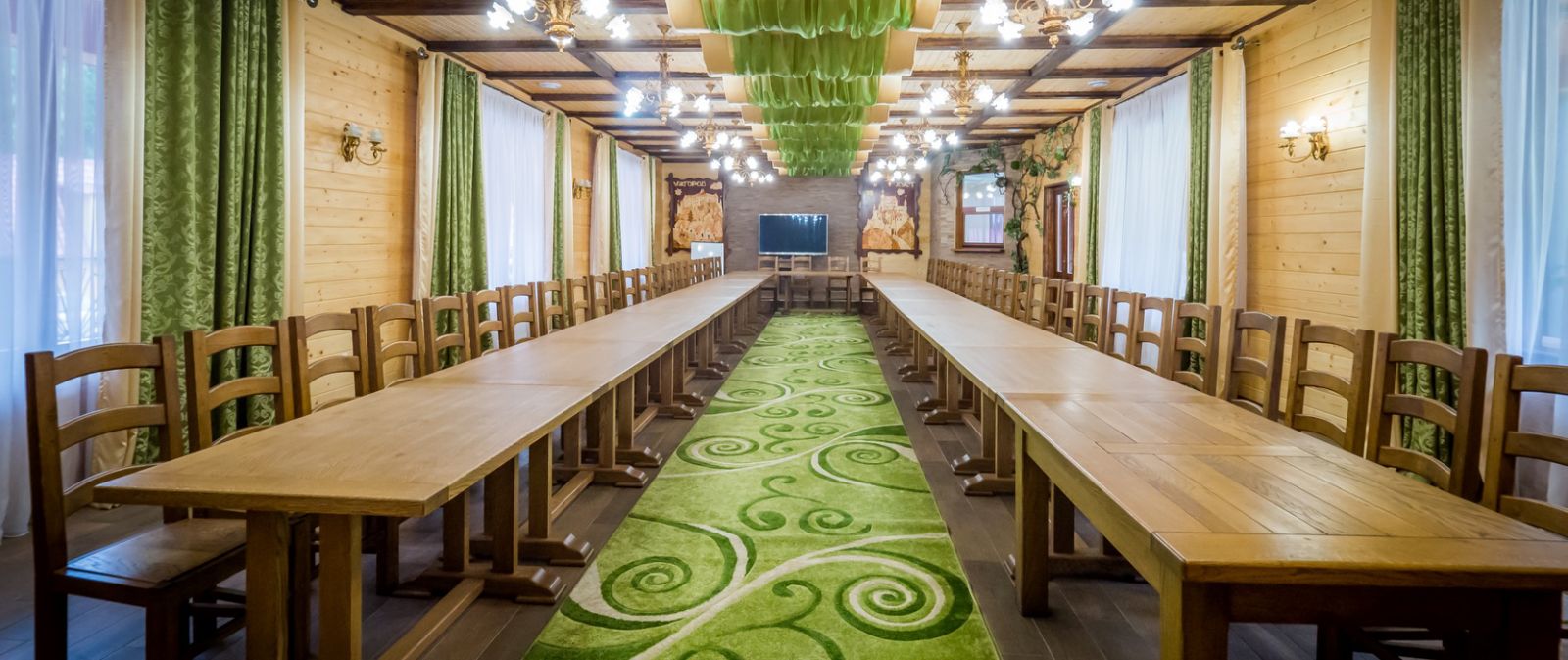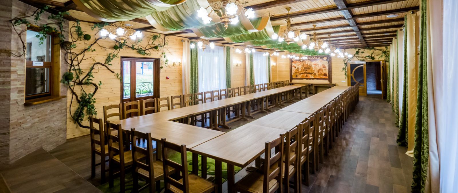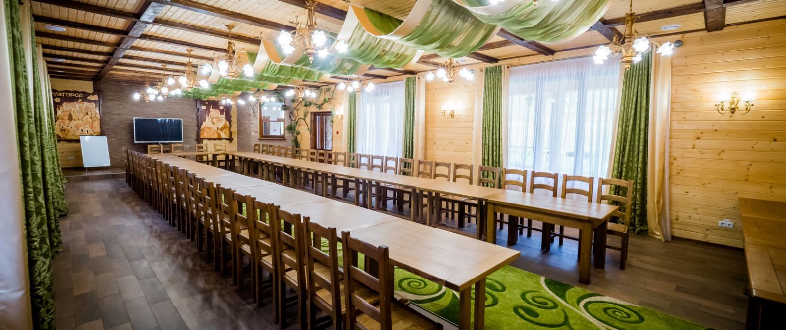 Конференц-зал «Арніка», розташований в урочищі Красний, Синевирська Поляна, Закарпатська область, поряд із озером Синевир — це простора та комфортна локація для проведення ділових заходів, конференцій і корпоративних подій.