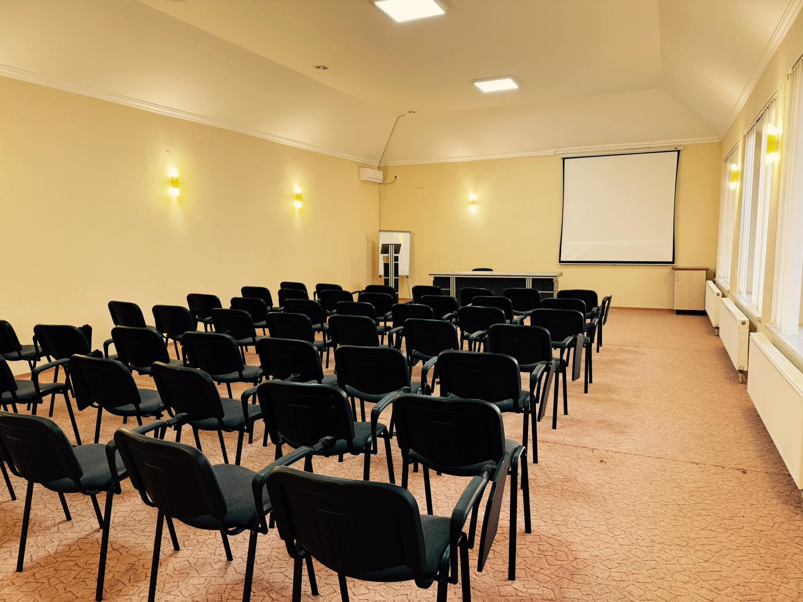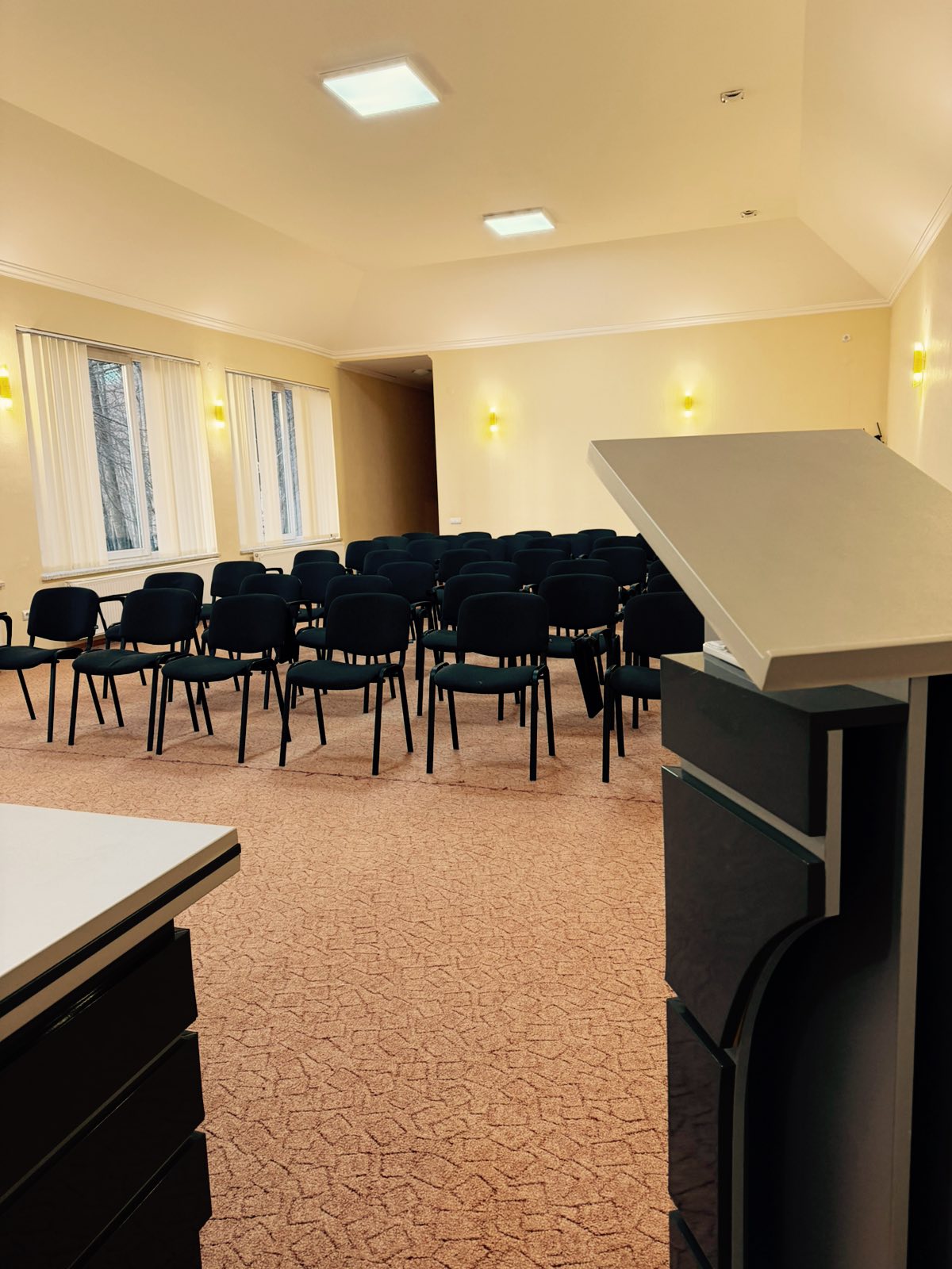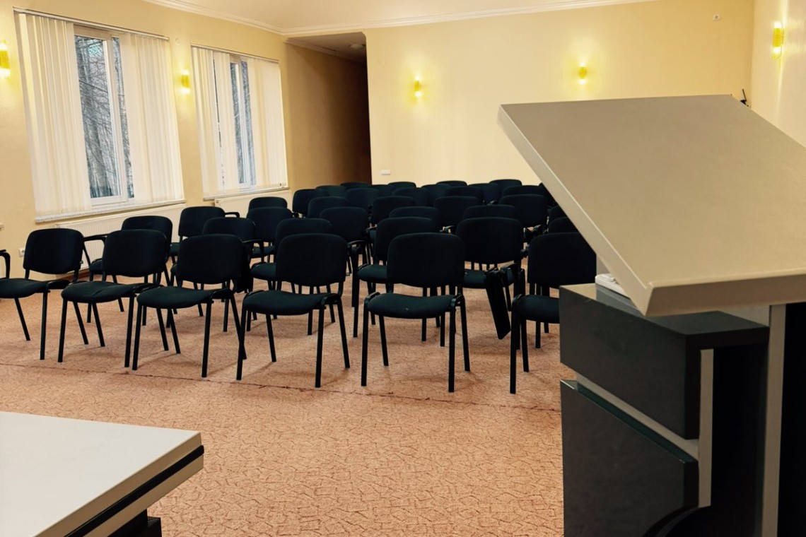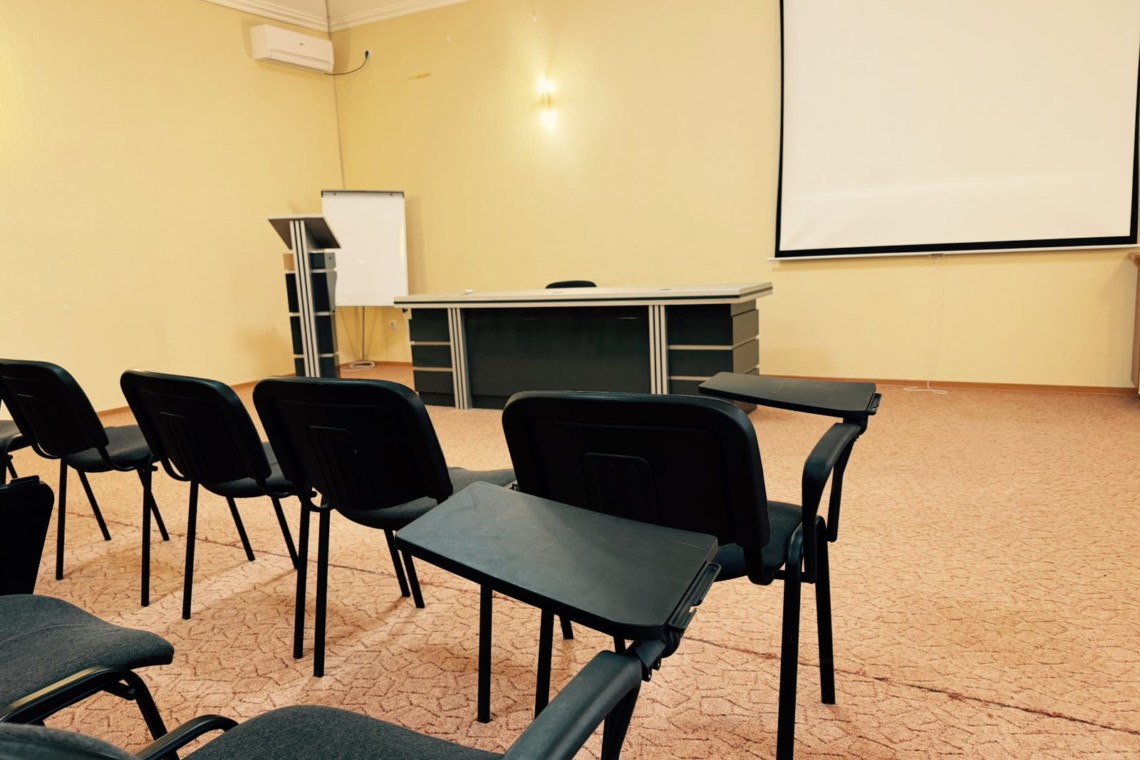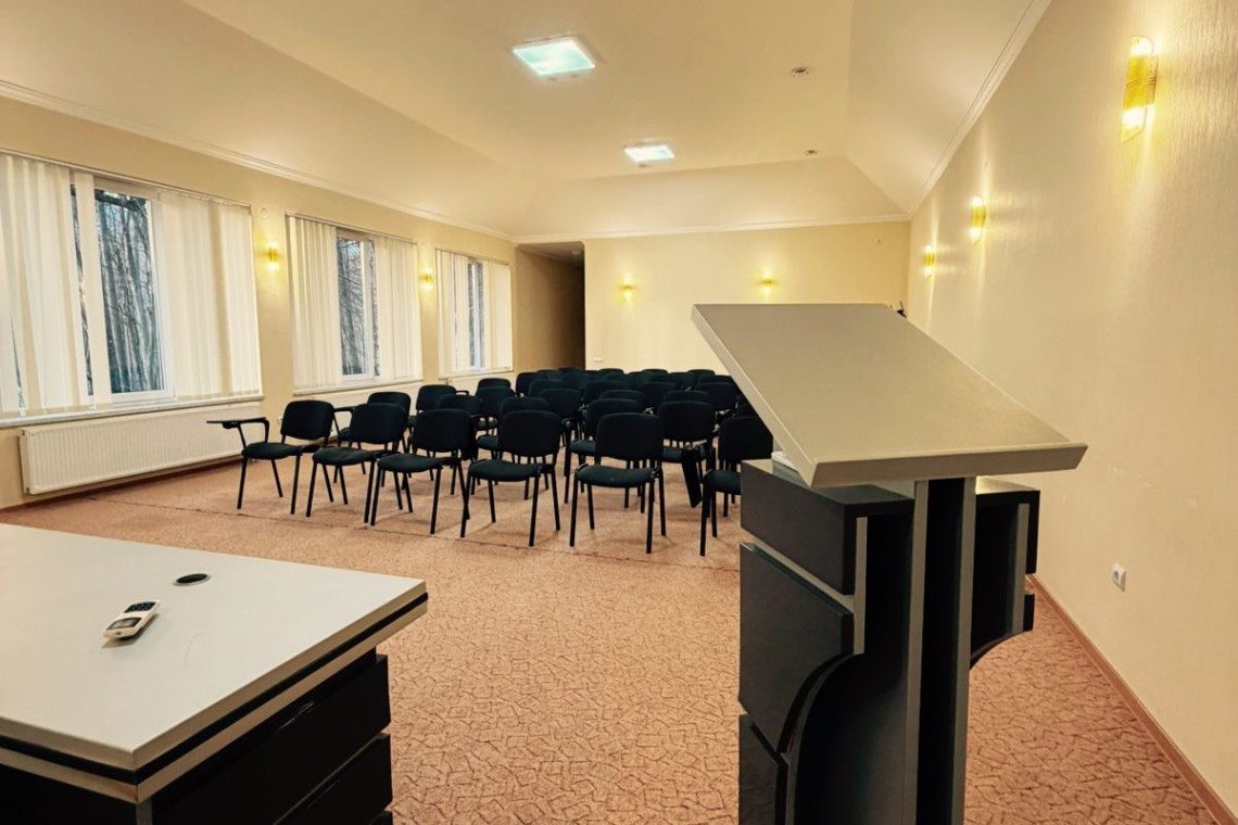 Зал розташований на території комплексу та підходить для проведення конференцій, тренінгів, семінарів, презентацій, корпоративних подій і освітніх заходів. Простір легко адаптується під різні формати розсадки та вимоги організаторів.