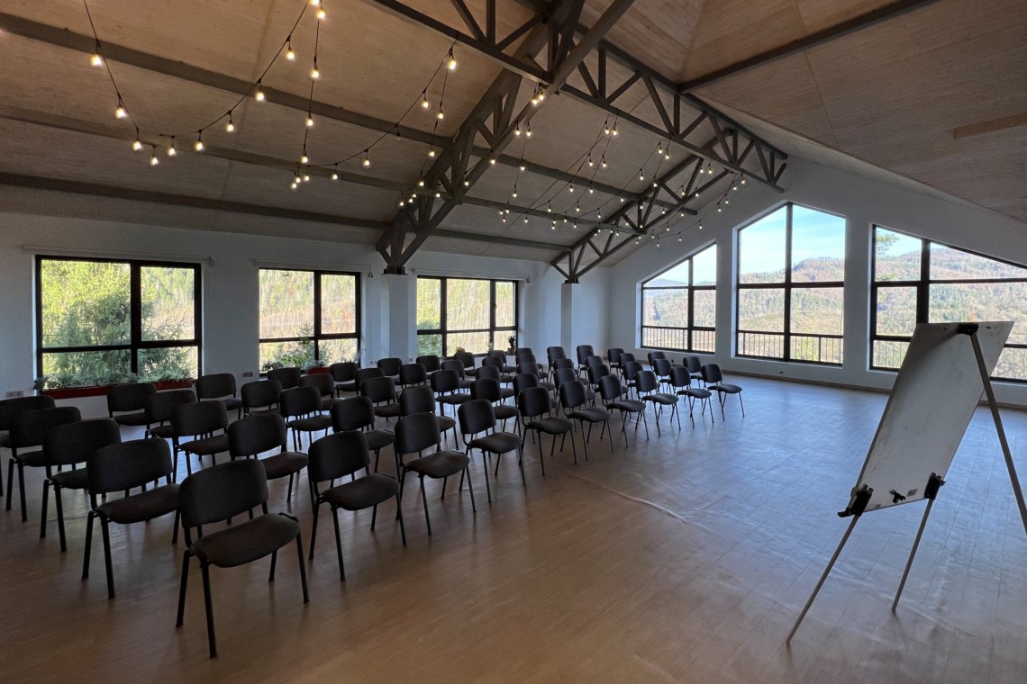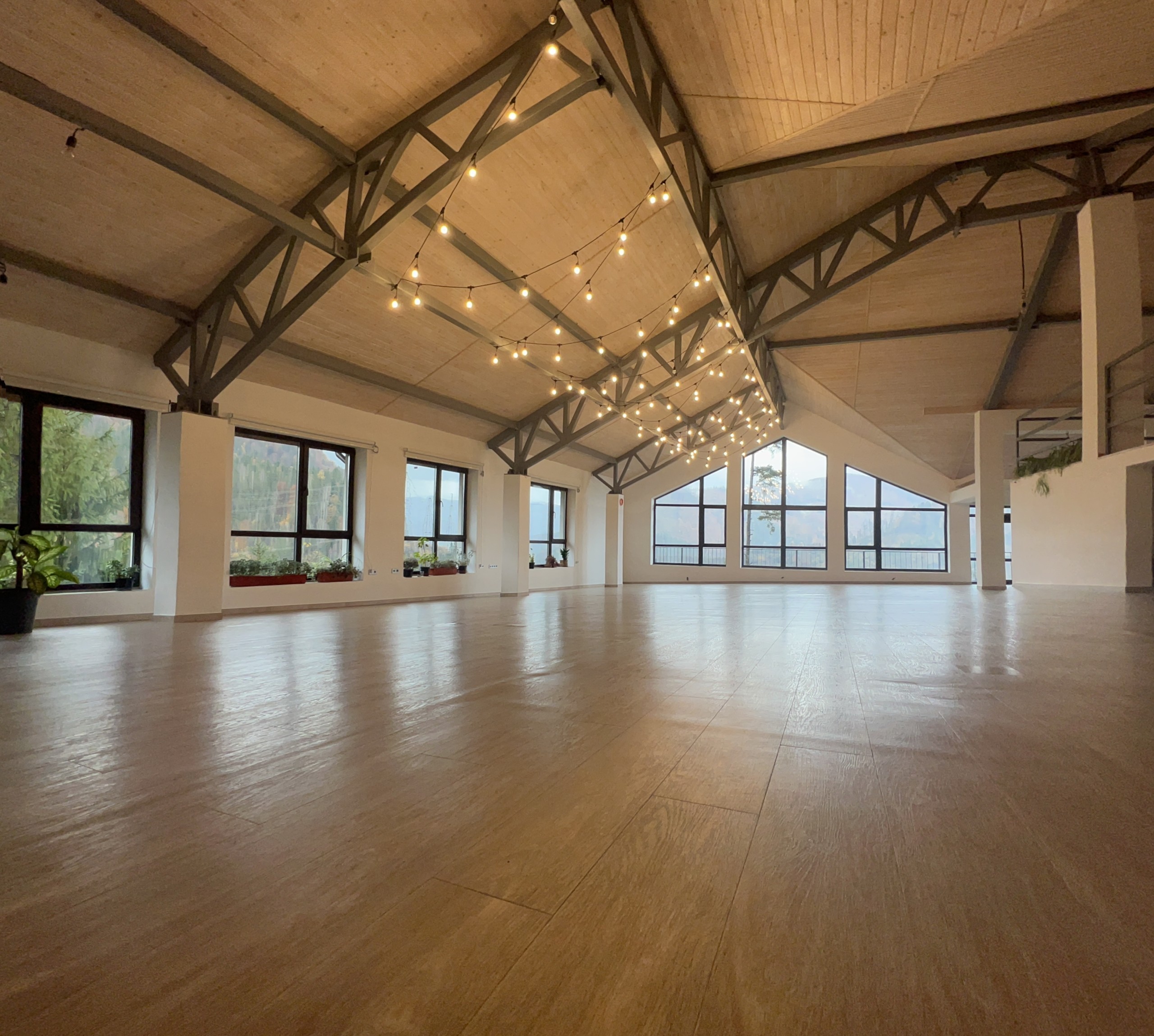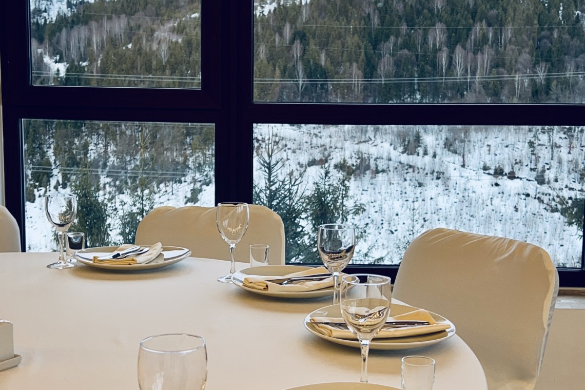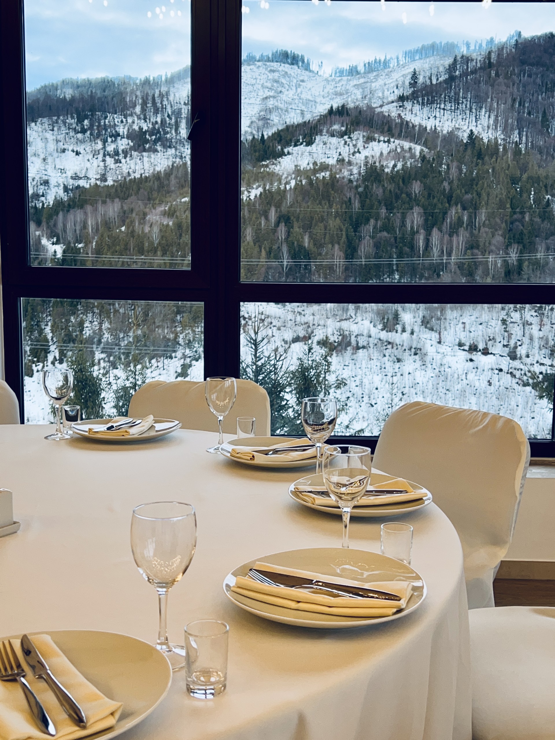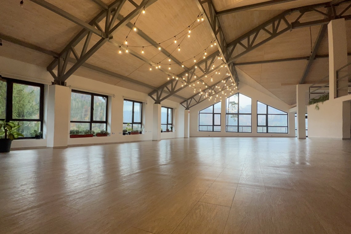 Панорамний зал — стильна локація для подій у серці Карпат. Просторий і функціональний зал площею 200 м² — ідеальне рішення для заходів від 50 до 100 гостей. Розташування серед гір дарує кожній події особливу атмосферу: чисте повітря, мальовничі краєвиди, відчуття свободи та натхнення.