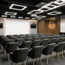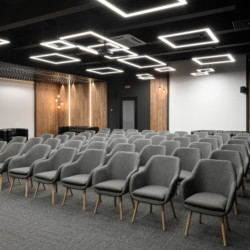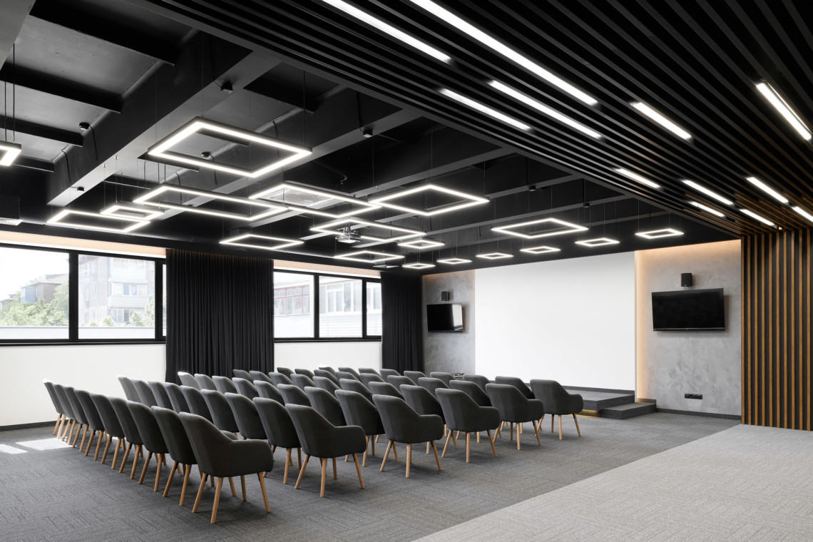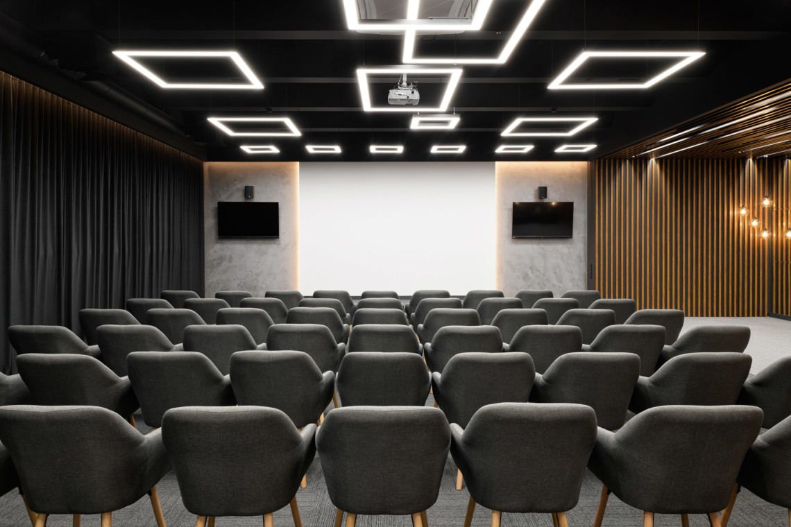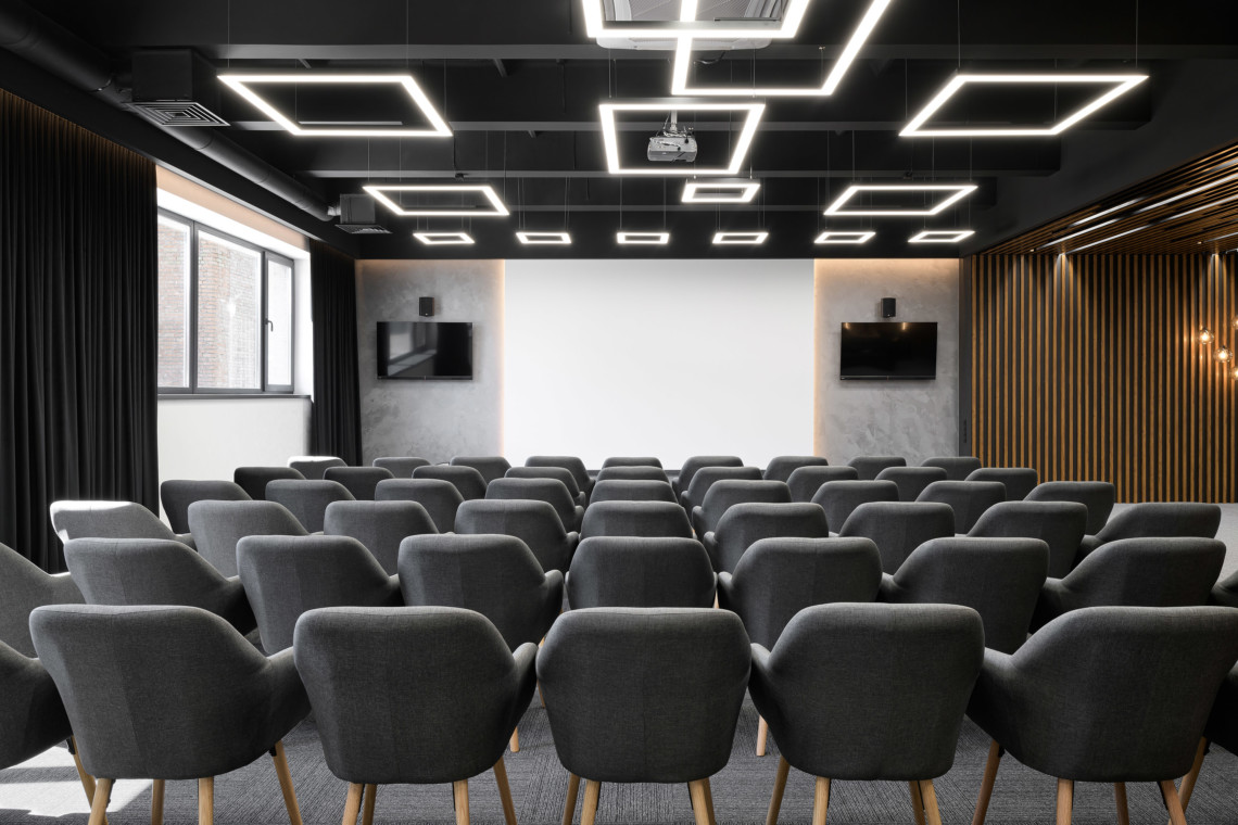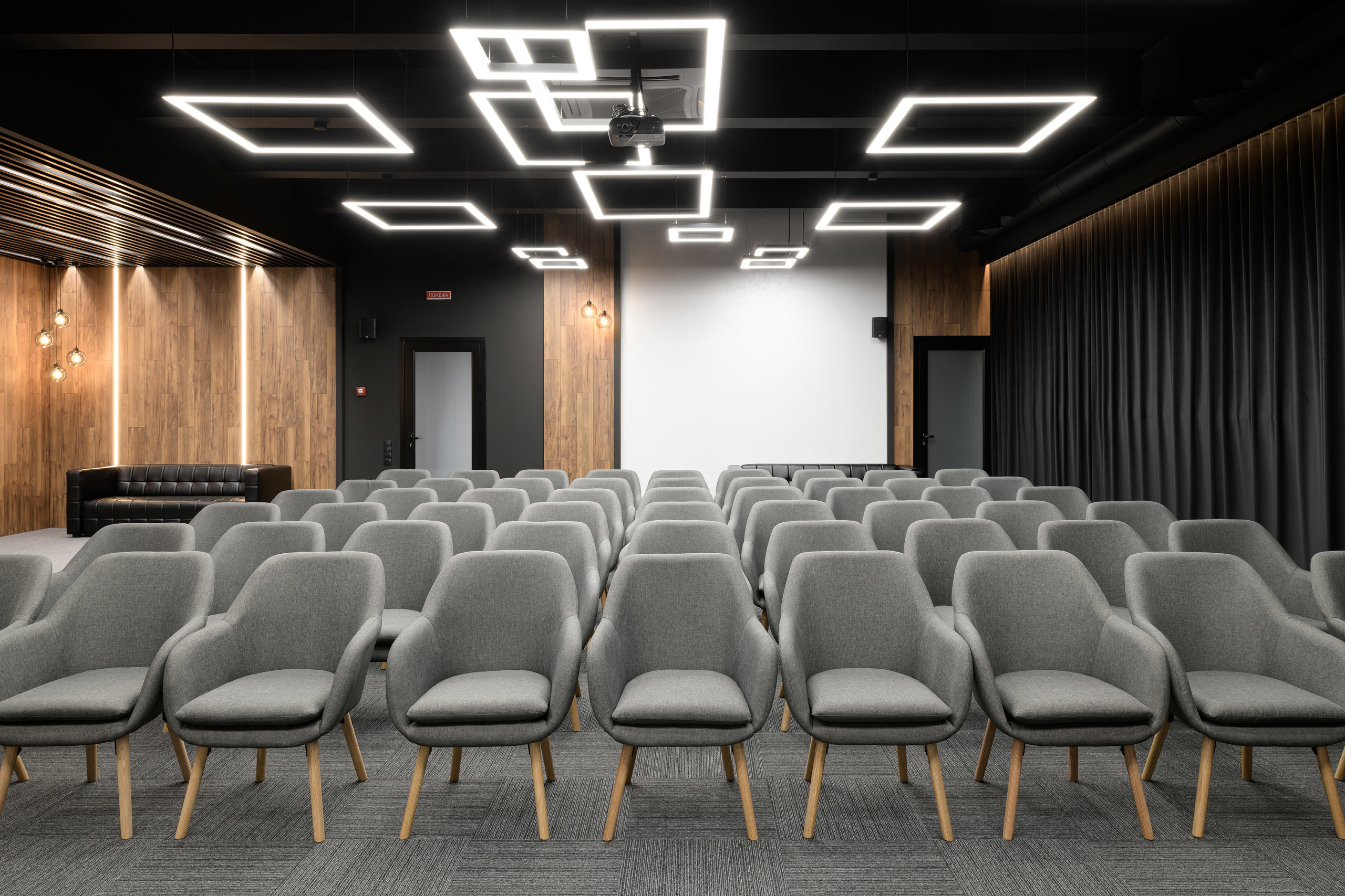 Зала ідеально підходить для проведення конференцій, виставок, тренінгів або навіть кінопоказів. Сучасне технічне оснащення, продумане планування простору та комфортна атмосфера створюють оптимальні умови для ефективної роботи та продуктивного спілкування.