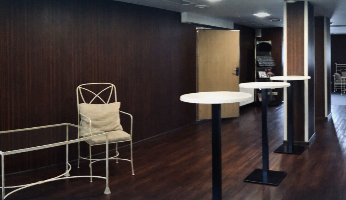 Зал має хол для проведення реєстрацій та кава-пауз та окремий вихід на вулицю і на палубу з панорамним видом на Дніпро та історичний центр Києва. Площа холу: 73,2 м².