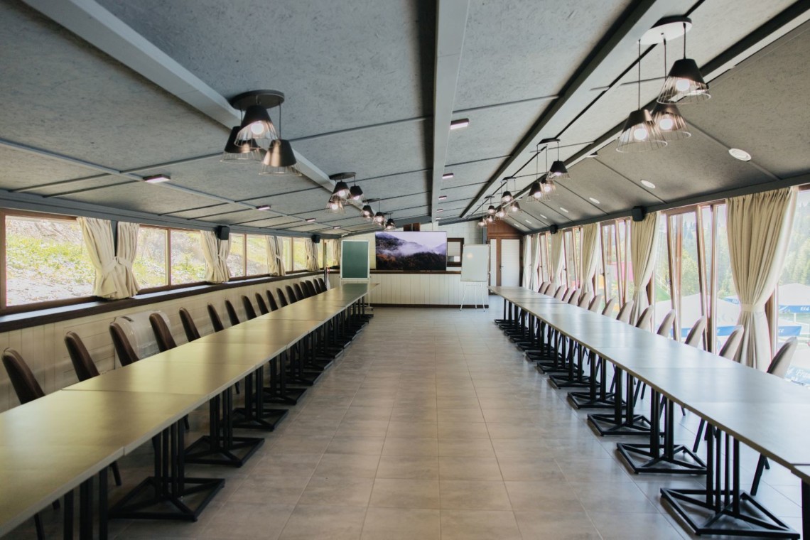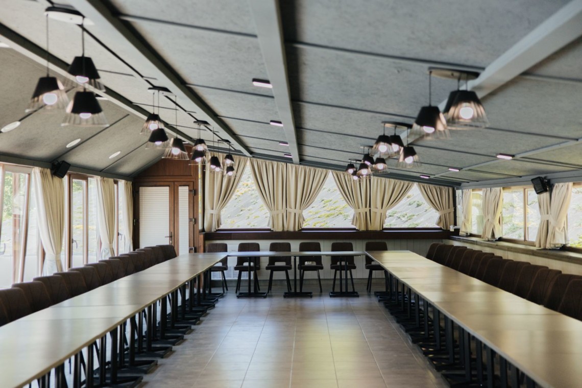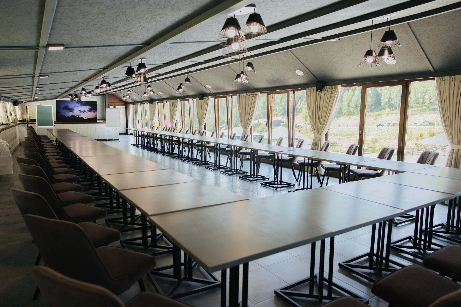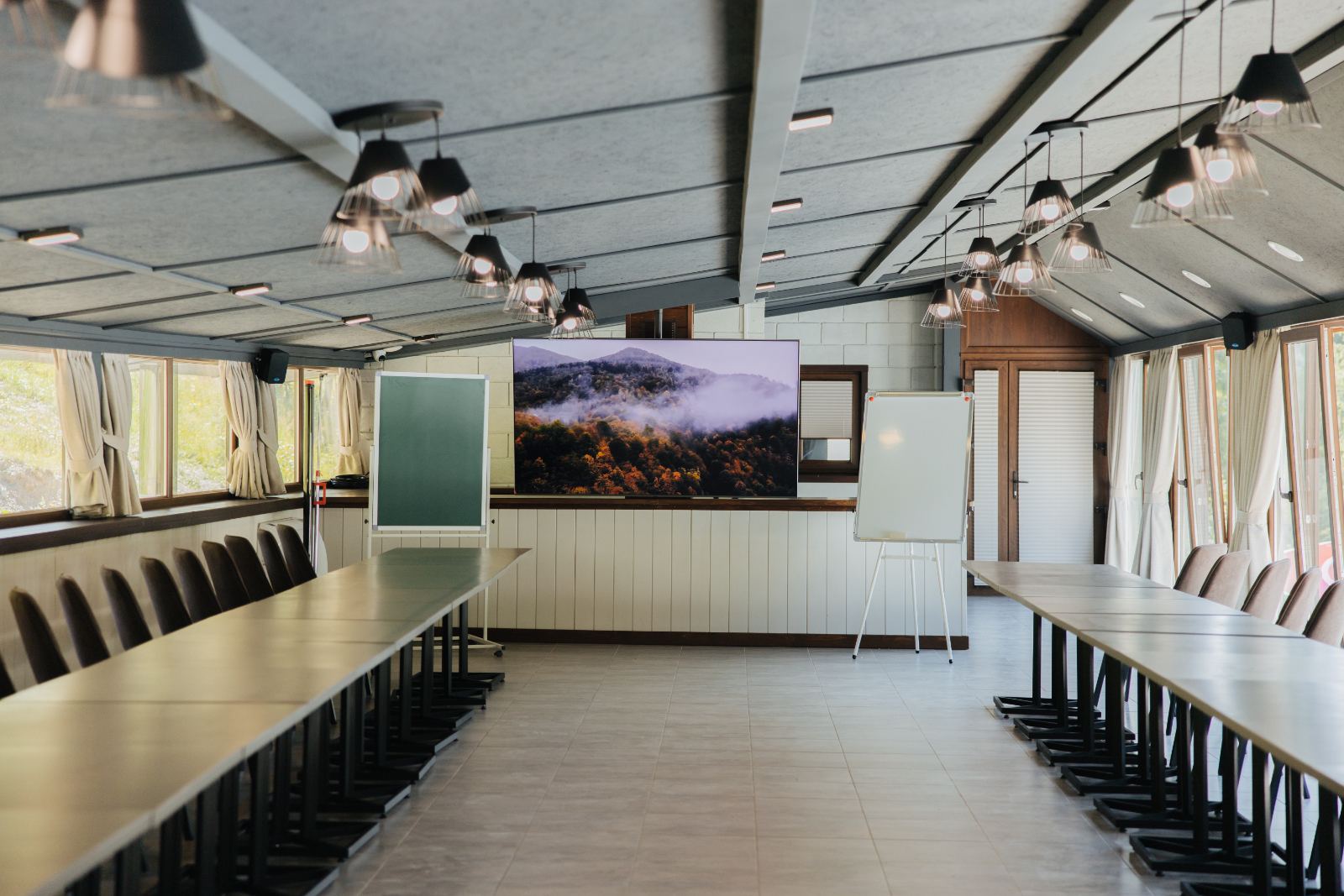 У готельному комплексі «Озеро Vita» доступна оренда конференц-залу в Карпатах для проведення навчання, тренінгів, переговорів, корпоративних та приватних банкетів.