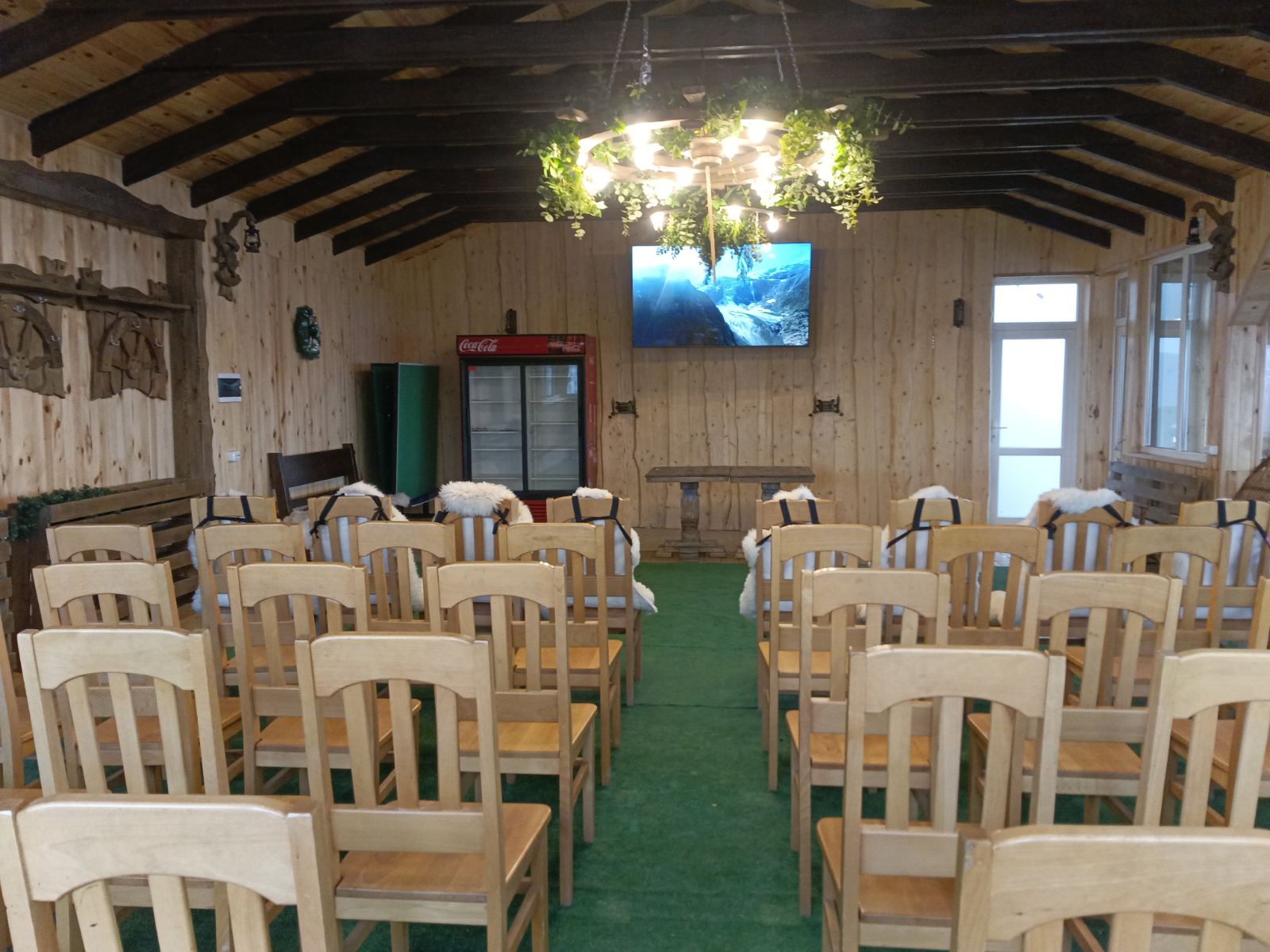 Сучасна, нова зала в мальовничій гірській локації — ідеальний варіант для проведення конференцій, тренінгів, стратегічних сесій та корпоративних виїздів у форматі “все включено”. Атмосфера усамітнення та природи сприяє продуктивній роботі та відпочинку одночасно.