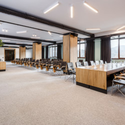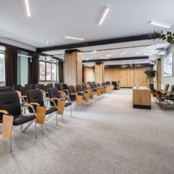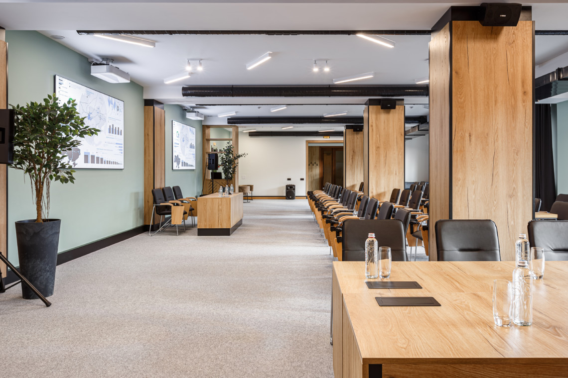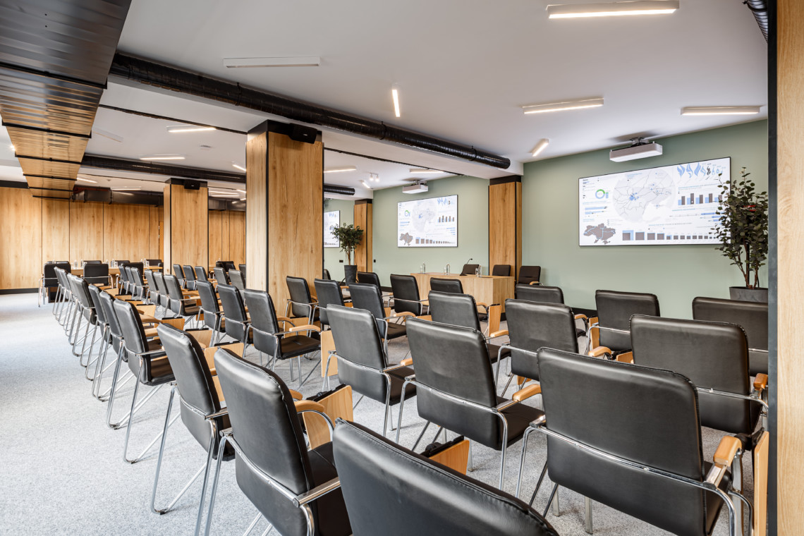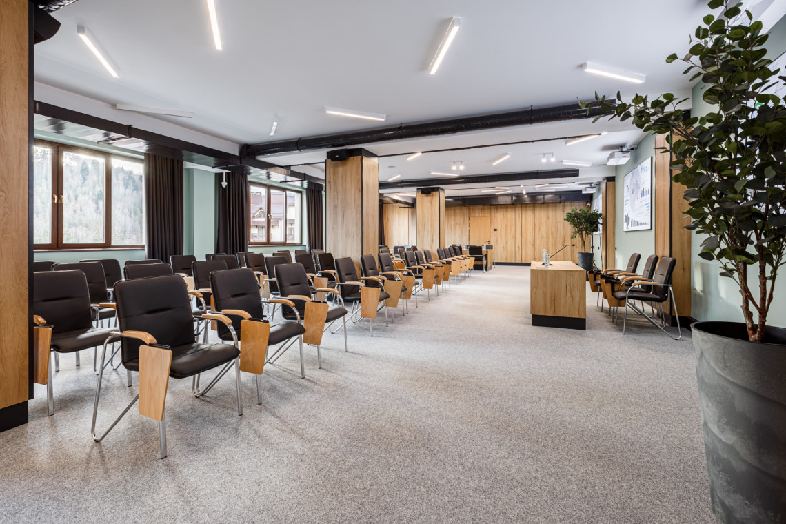 Наш сучасний конференц-зал — це простір площею 190 м², розрахований на 60–70 осіб. Зал обладнаний усім необхідним для комфортного та результативного проведення вашого заходу: