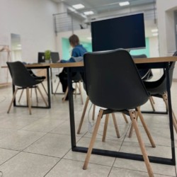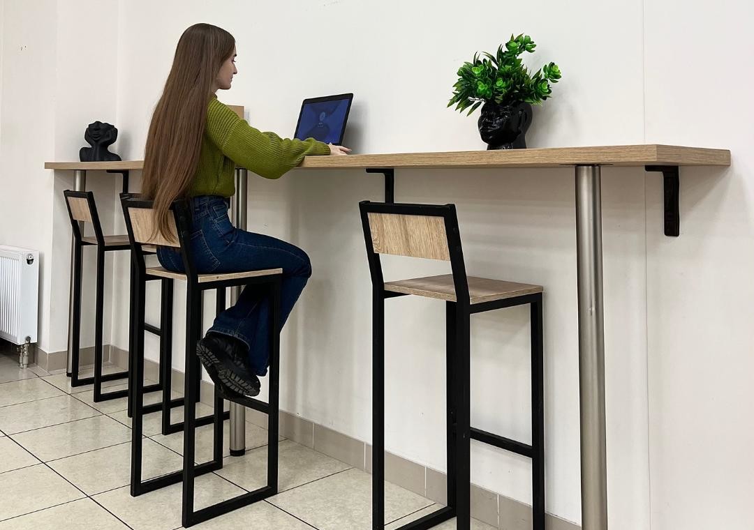 У вартість оренди входить: WiFi, StarLink, стілець та стіл з трьома розетками, зручні крісла, безлімітна кава та печиво.